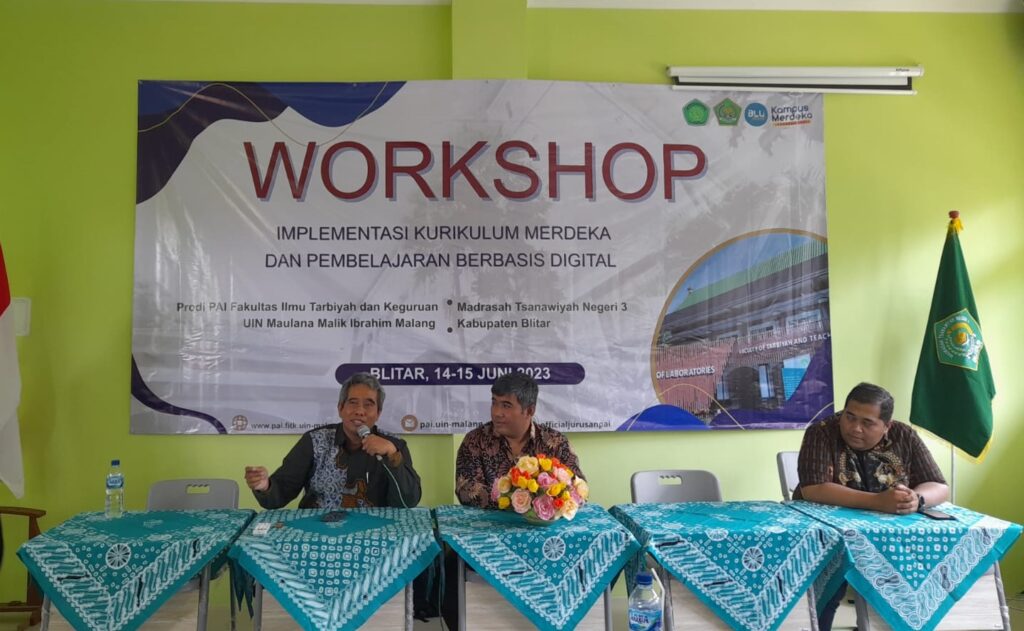 PAI FITK UIN Malang – Kebijakan implementasi kurikulum merdeka masih belum seutuhnya dipahami oleh para pendidik di satuan pendidikan dengan baik, termasuk di MTsN 3 Blitar. Selama dua hari Prodi PAI melaksanakan pengabdian masyarakat dengan menggelar acara workshop “Implementasi Kurikulum Merdeka dan Media Pembelajaran” di MTsN 3 Blitar yang diikuti