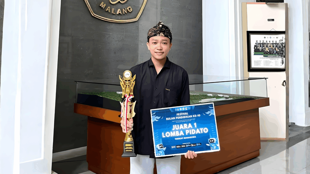PAI FITK UIN Malang – Kabar membanggakan datang dari Program Studi Pendidikan Agama Islam (PAI) Fakultas Ilmu Tarbiyah dan Keguruan (FITK) UIN Maulana Malik Ibrahim Malang. Mahasiswa berprestasi, Eka Agustin Fua’di, berhasil meraih Juara 1 Lomba Pidato Tingkat Nasional dalam ajang bergengsi Festival Bulan Pendidikan 2025. Lomba yang diselenggarakan secara
