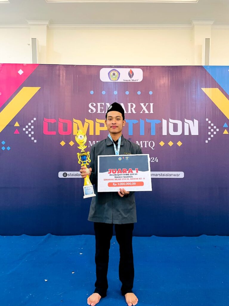 Adalah Muhammad Nanda Wildan, mahasiswa PAI FITK UIN Malang semester 3 ikut berkompetisi lomba MFQ (Musabaqah Fahmil Qur’an) dan menyabet juara I Tingkat Nasional. Untuk dapat ‘menggondol’ juara I, Nanda harus melewati babak penyisihan hingga babak final dengan menyisihkan lebih dari 17 peserta dari berbagai kampus ternama di tanah air. Musabaqah ini memang didesain tingkat nasional guna memeriahkan hari milad STAI al-Anwar yang diikuti perguruan tinggi di Jawa dan luar Jawa, perguruan tinggi negeri (PTN) dan perguruan tinggi swasta (PTS) di tanah air.