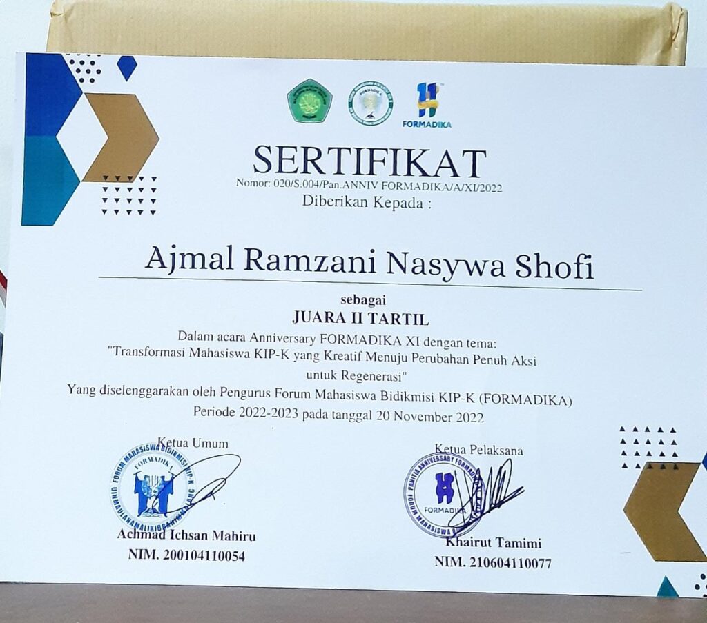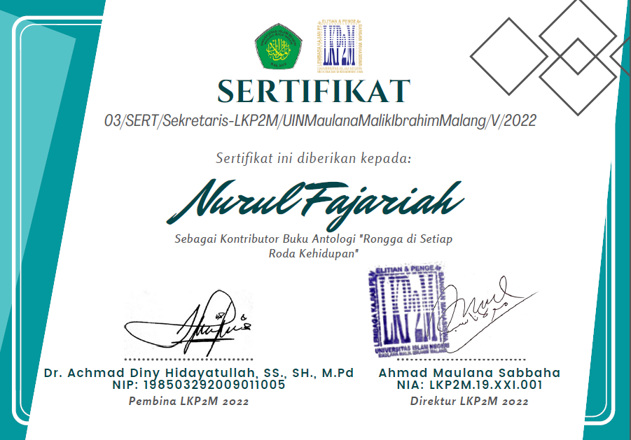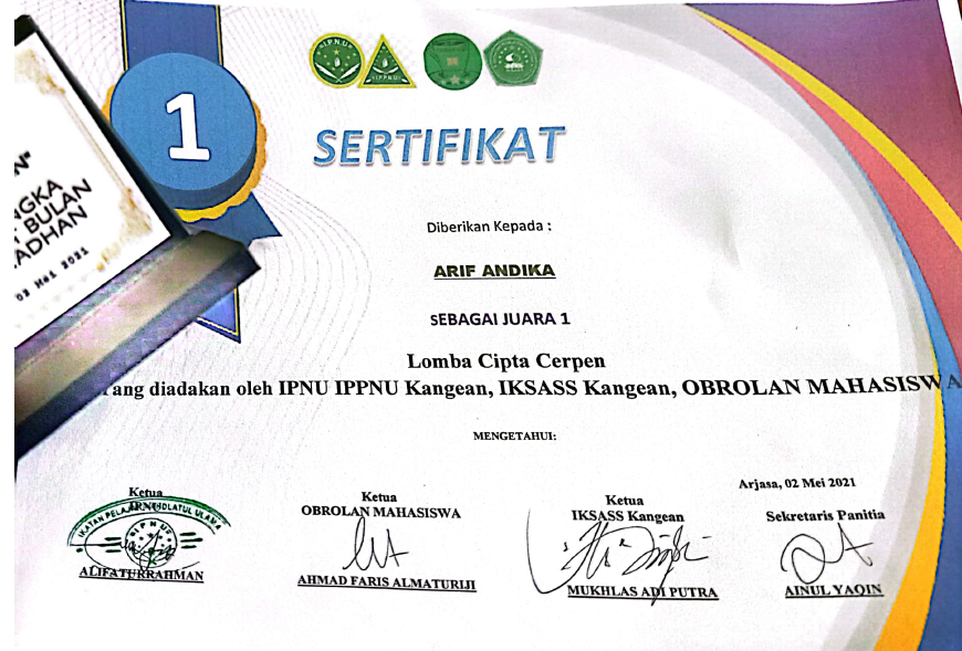 75 | M. Rafli Iltizamulloh | Lomba Artmosfair Dema FST UIN Maulana Malik Ibrahim Malang | 2021 | |