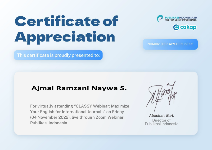 4 | Ali Hasan Assidiqi | Presenter The 6th International Conference on Islamic Education | 2021 | |