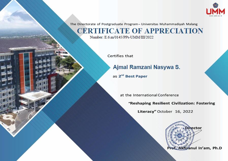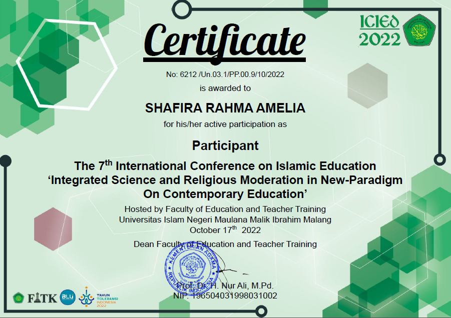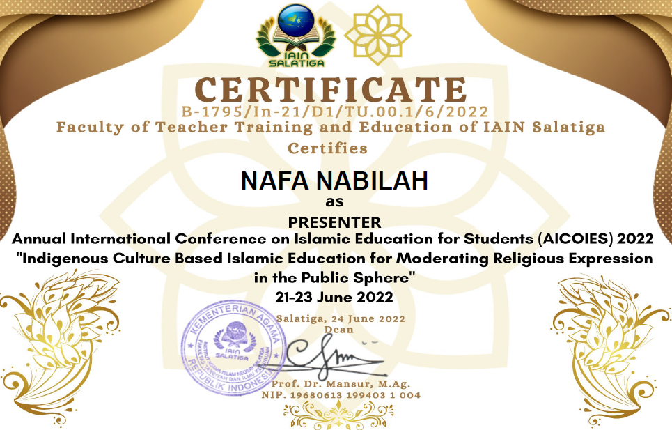 2 | Nafa Nabilah | Favorite presenter Annual International Conference of Islamic Education for Students | 2022 | |