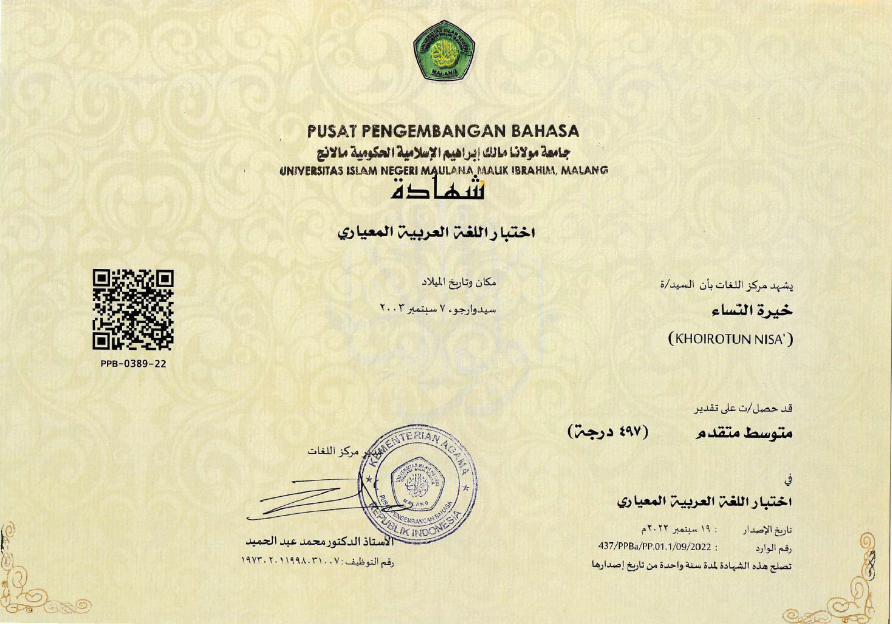 16 | Maulidi Thariq | Kegiatan Pembelajaran Kursus Bahasa Arab (Arabic Quantum) | 2022 | |