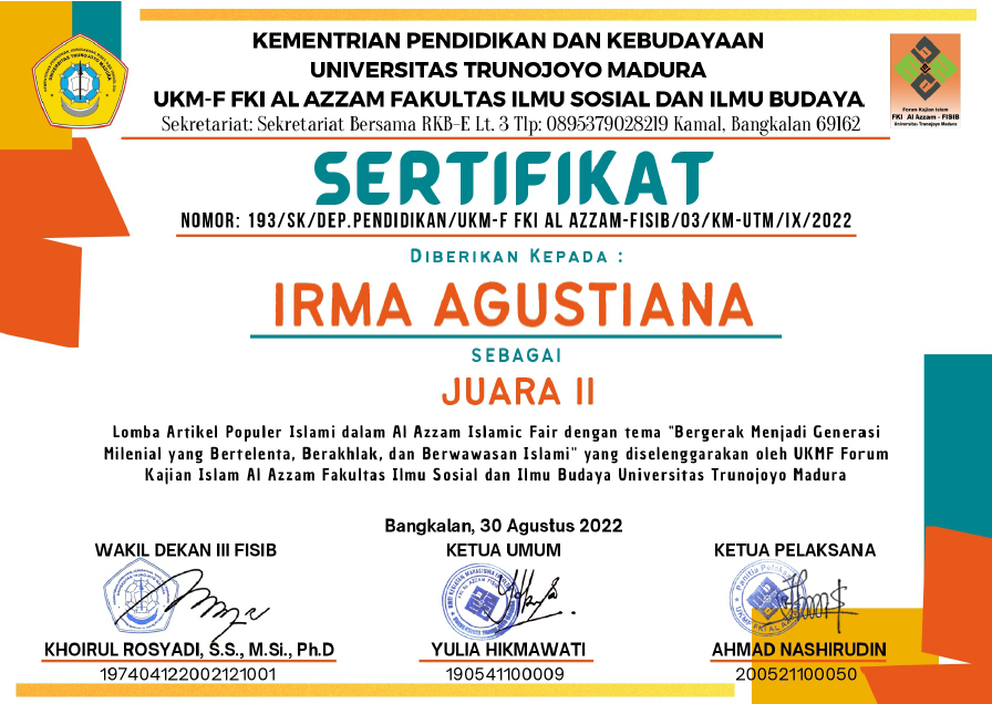 35 | Irma Agustina | Juara 3 Artikel Populer Islami Nasional | 2021 | |