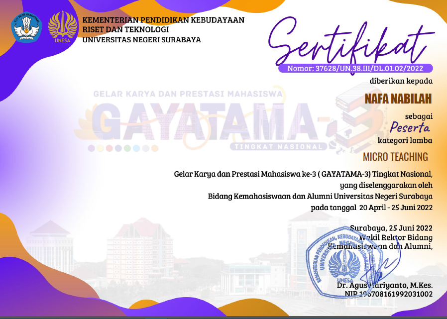 53 | Ellisya Putri | Juara 2 Lomba Video Kreatif GPAN Malang | 2020 | |